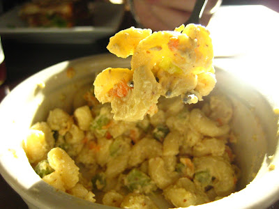 Our sides arrived first: mine was Chipotle potato salad (vegan and yummy)... and Christie's was vegan pasta salad wtih a variety of veggies (pictured a little further below).